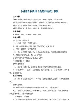 小班综合《快乐的曲线》教案《快乐的曲线》是幼儿园小班综合教案,以游戏“彩带跳舞”为线索。活动目标包括学画曲线、培养合作与表达能力等。准备有彩带、画纸、音乐。过程有教师舞动彩带激发兴趣,引导观察讨论曲线,最后在游戏情景中作画,让幼儿体验作画乐趣。